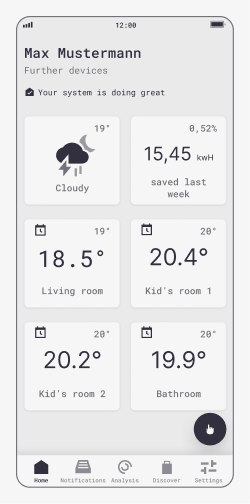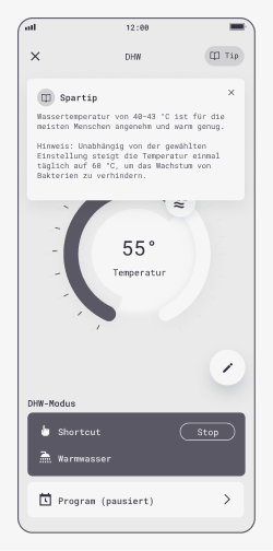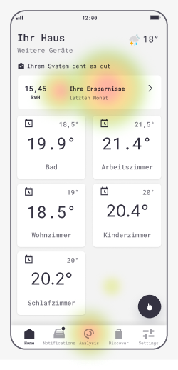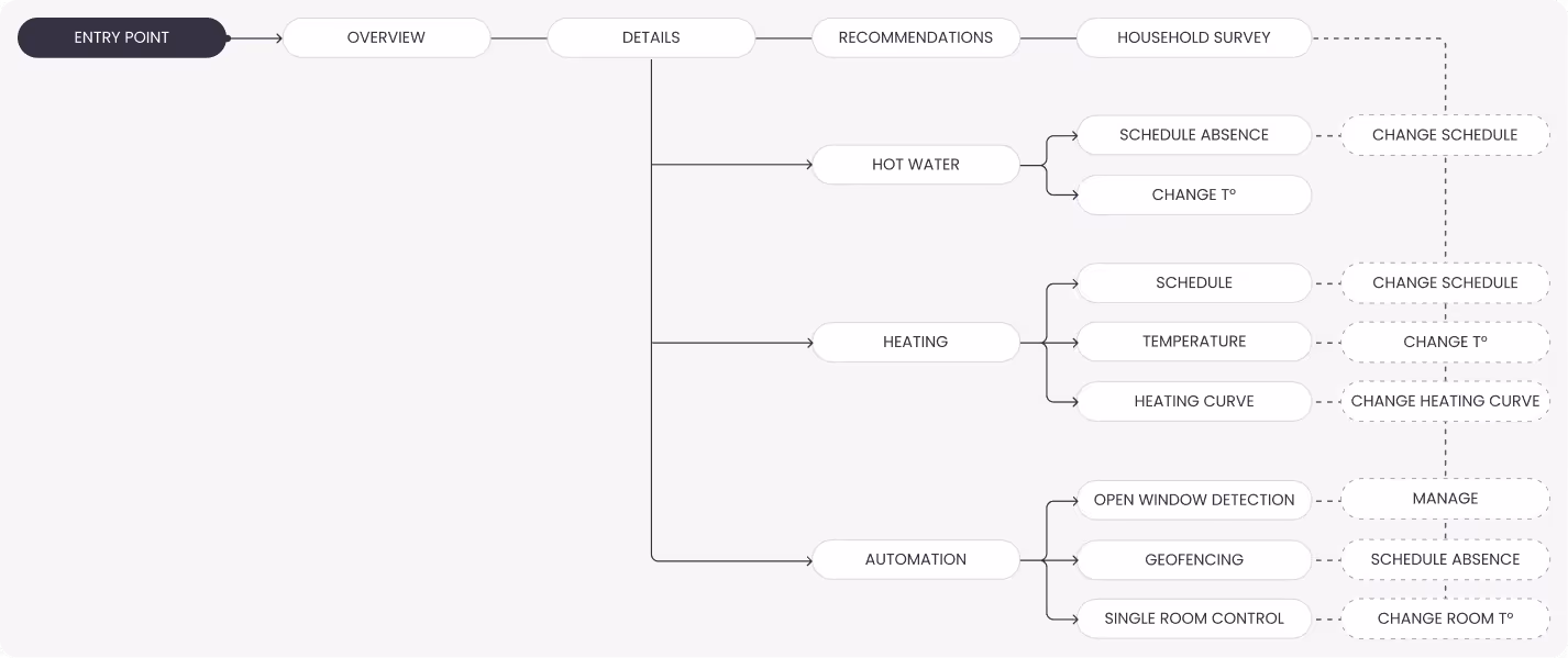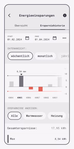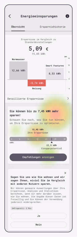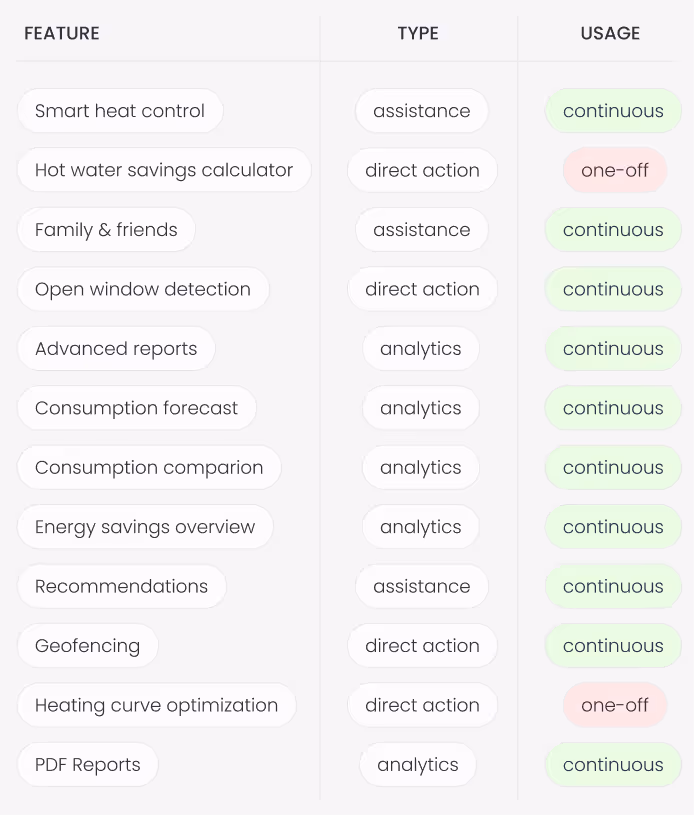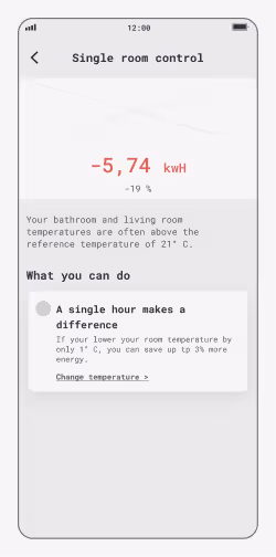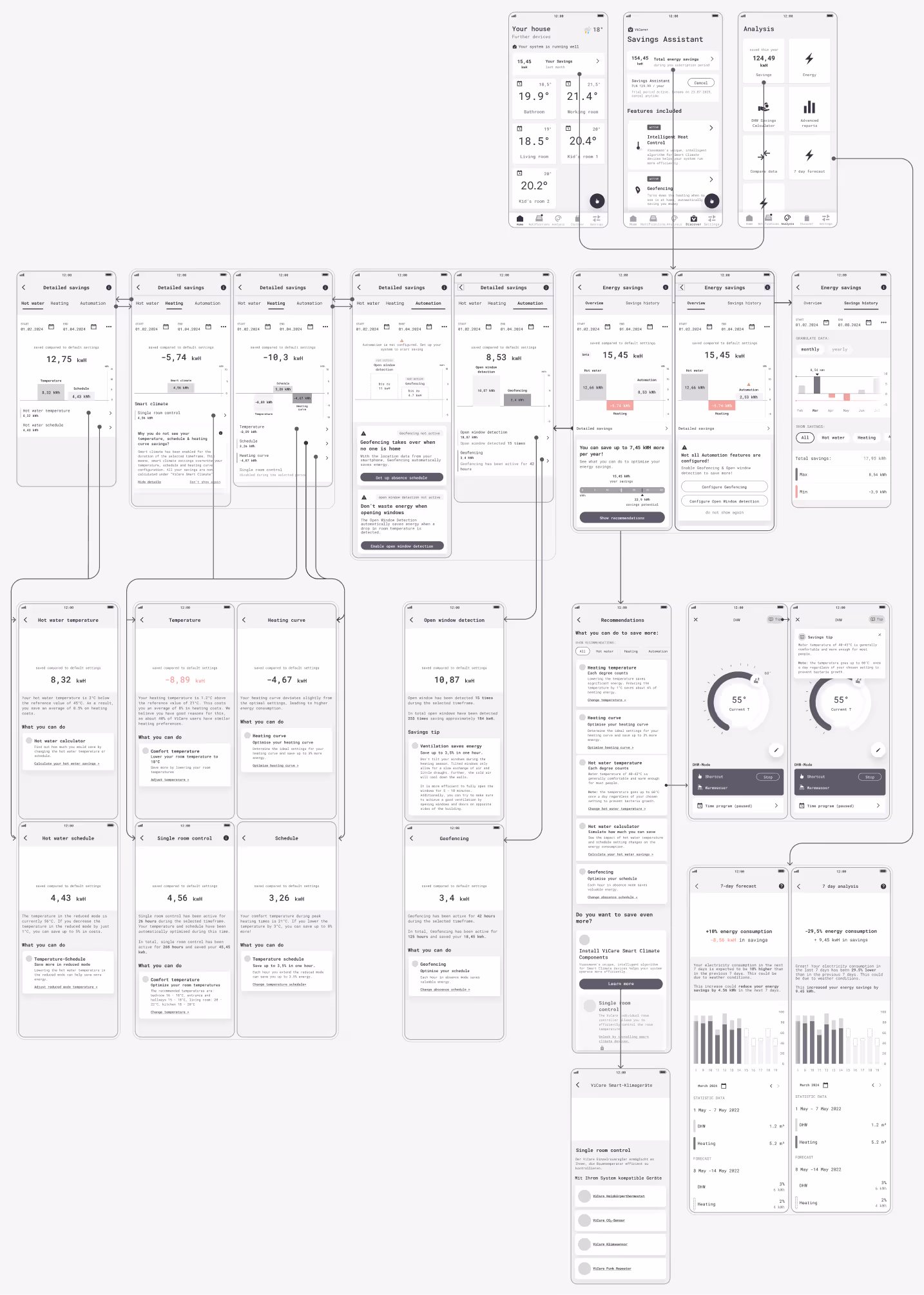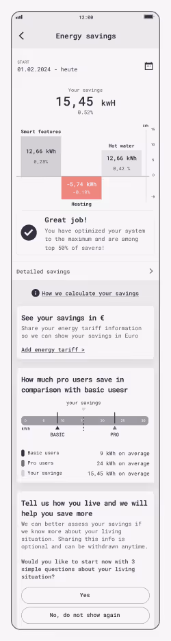View savings breakdown by source: heating, hot water and automation. The prototype shows the "happy path" will all features and smart devices available. We have also covered scenarios for users without smart thermostats and/or open window detection.
