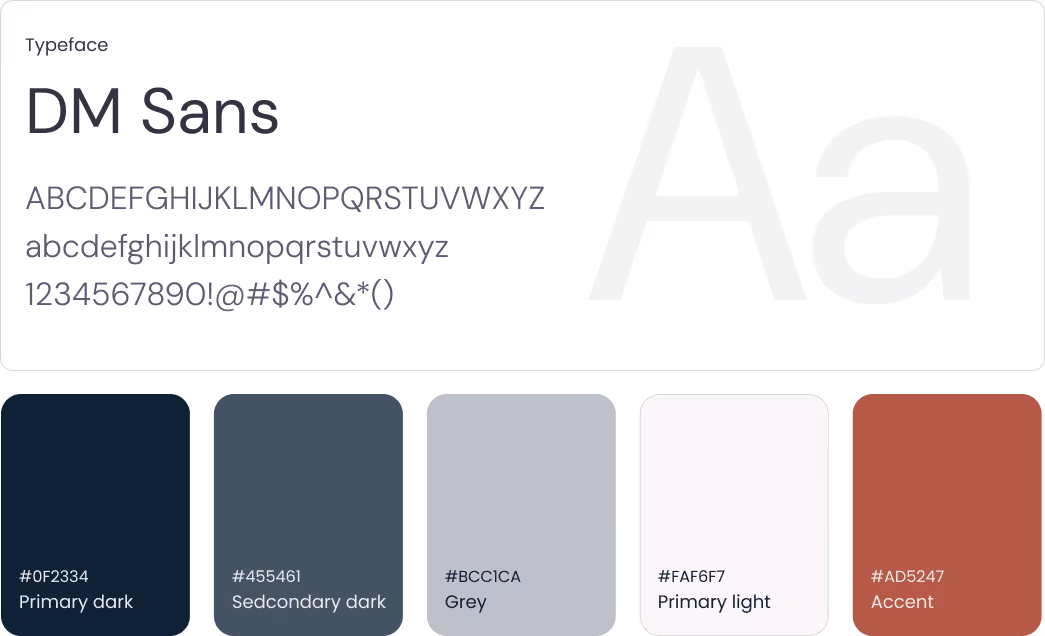 Primary and secondary colors are quite reserved and muted, but we decided to give it a warm touch with a punchy accent.